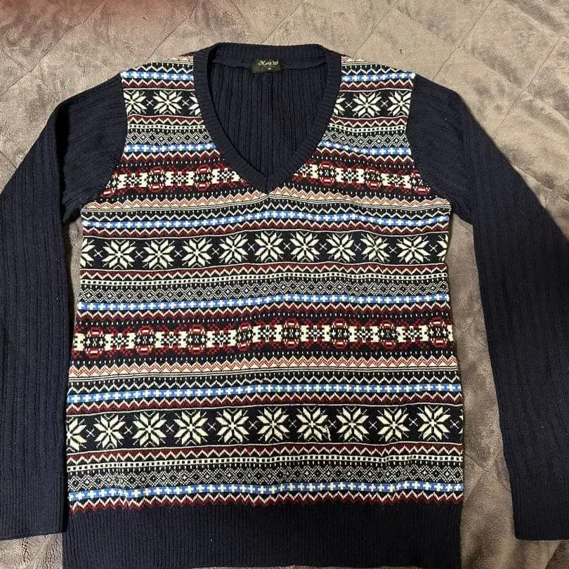 멘즈 비기 네이비 페어아일 패턴 V넥 스웨터
