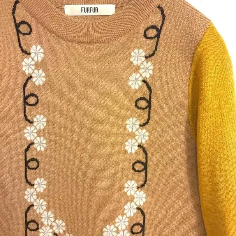 FURFUR 블루밍 리프 스웨터 꽃무늬 양모 100% 카멜