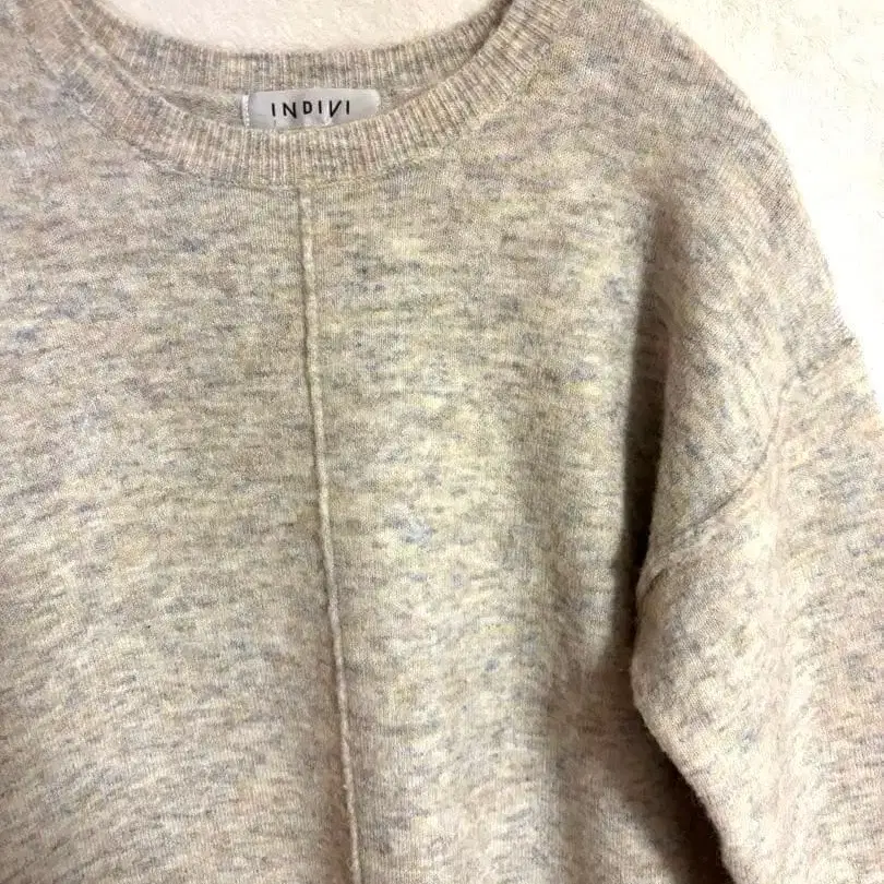 INDIVI 마블 크루넥 니트 화이트 사이즈 38