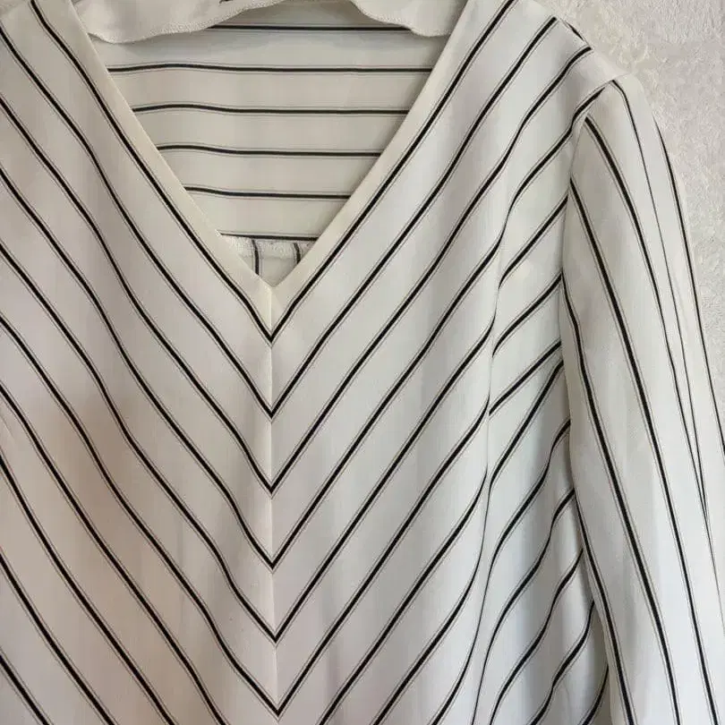 INDIVI 바이어스 스트라이프 블라우스 오피스 화이트 사이즈 38