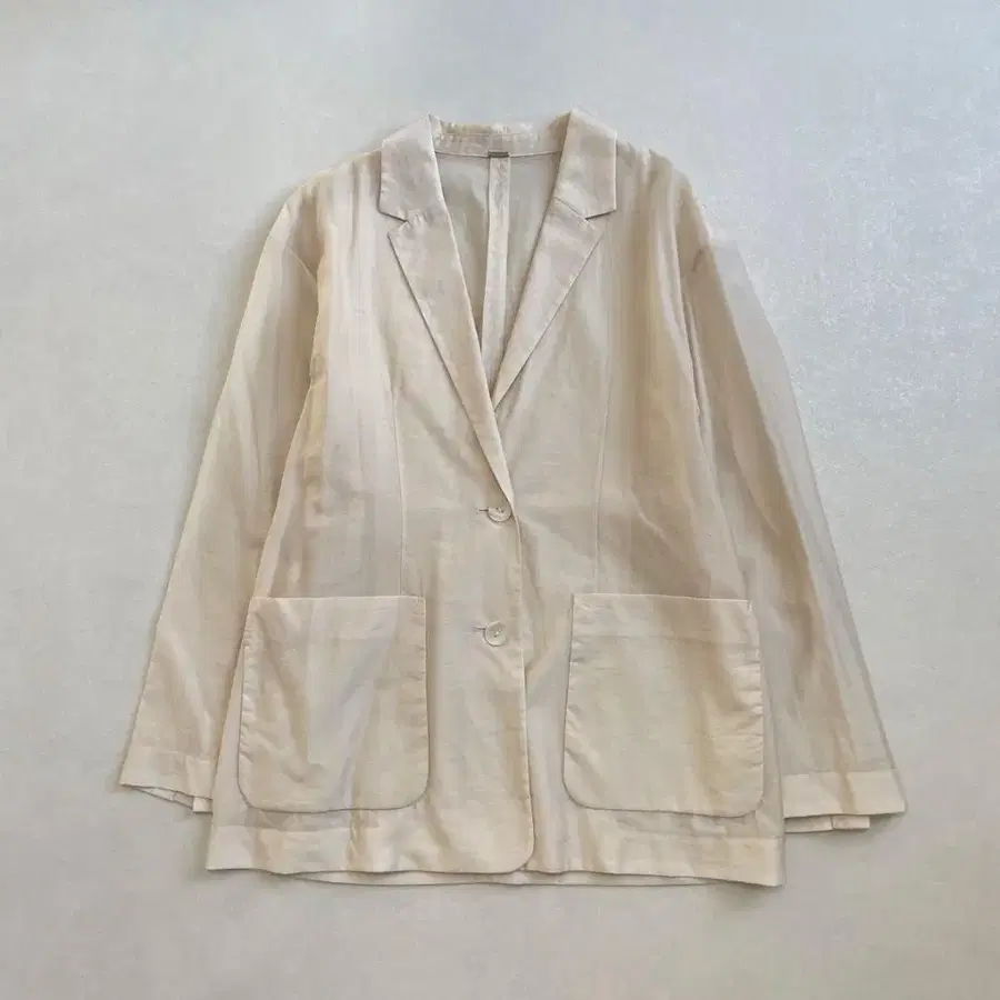 [ Design/Styling ] 적당한 투명감과 광택감이 있는 소재로 만든 시어 자켓. 안감이 없고, 떨어지는 느낌의 가벼운 착용감은 셔츠나 가디건처럼 가볍게 걸치기 좋습니다. 트렌디한 시어 소재는 걸치기만 해도 멋스럽게 보일 것입니다.