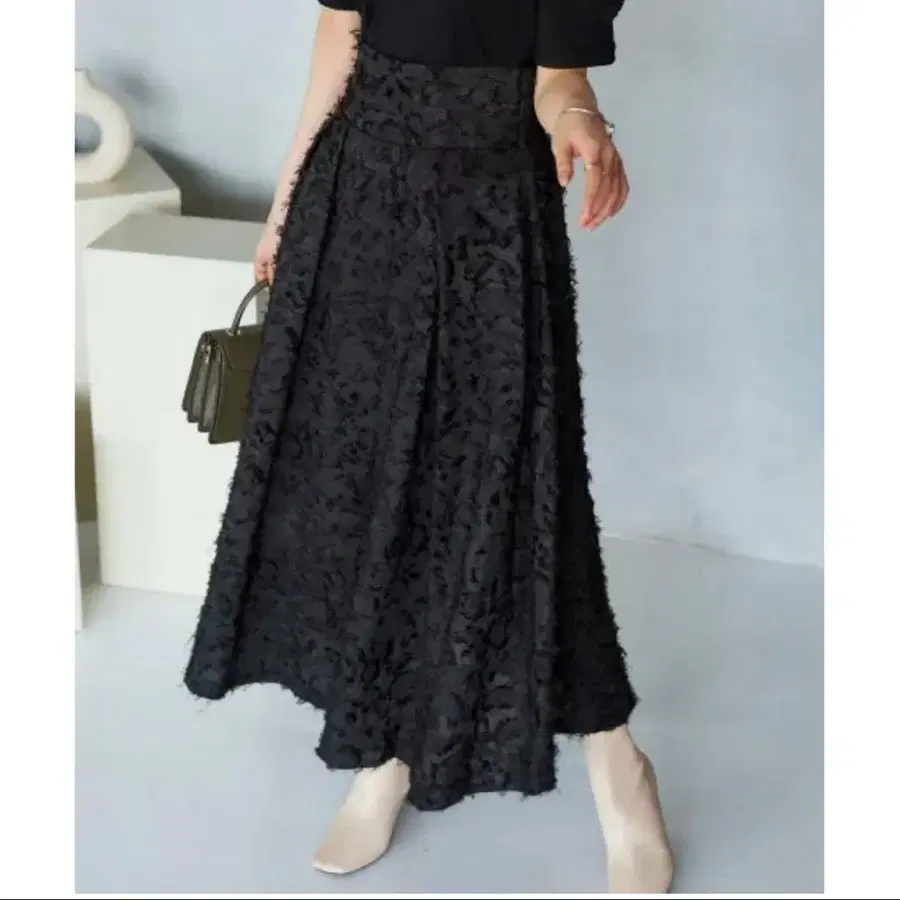 루일 에 부티크 컷 자카드 하이웨스트 스커트 블랙