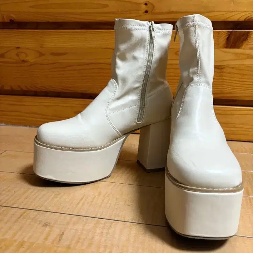 새상품급 화이트 플랫폼 부츠 하이힐 부츠
