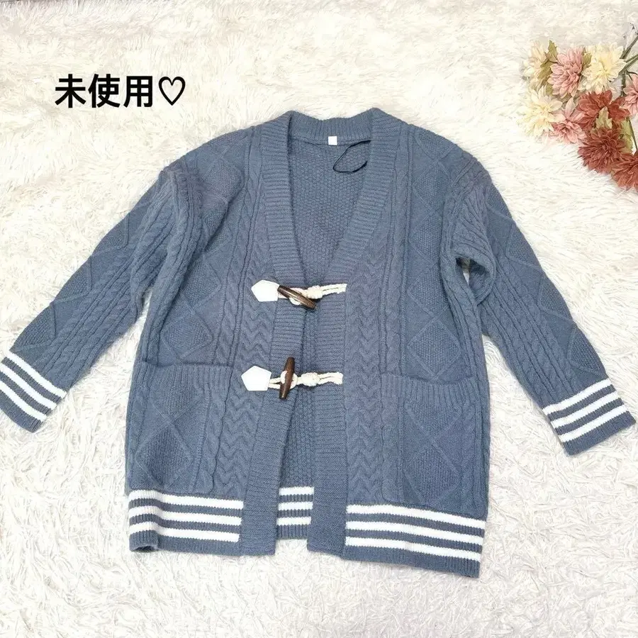 s.2079 니트 가디건 긴 길이 토글 버튼 크로 셰 뜨개질 블루 계열