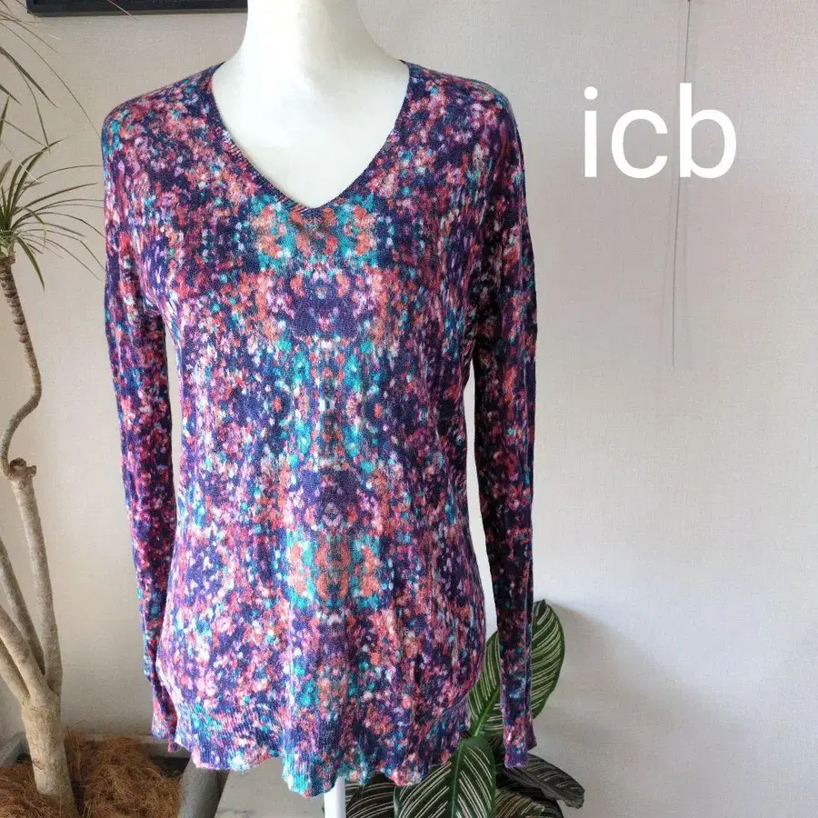아이시비 린넨 소재 루즈핏 니트 컬러풀 모자이크 패턴