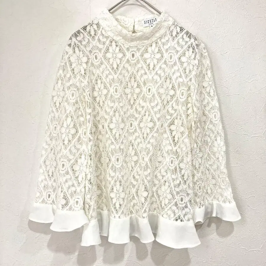 클로디 피에르로 레이스 블라우스 스탠드 카라 쉬폰 프릴 소매 (36)