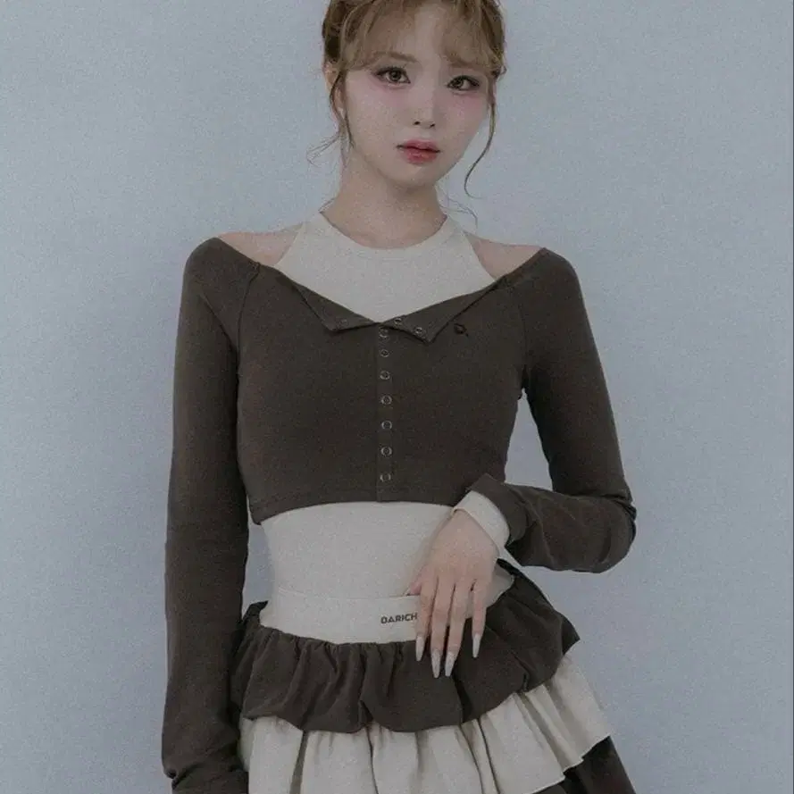 미사용 새상품 Darich 다리치 오프숄더 레이어드 리브 상의