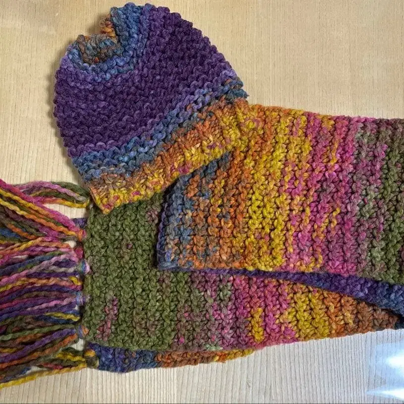 이탈리아제 카와베 울 혼방 스톨 컬러풀 믹스 머플러 모자 세트