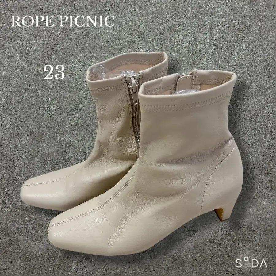 로페피크닉 [ 23 ] 사이드 지퍼 숏부츠 인조 가죽 아이보리