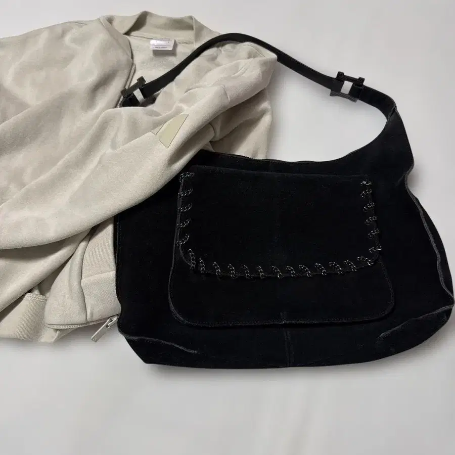 Y2K 스웨이드 블랙 원 숄더백 프론트 포켓 부착 Laura