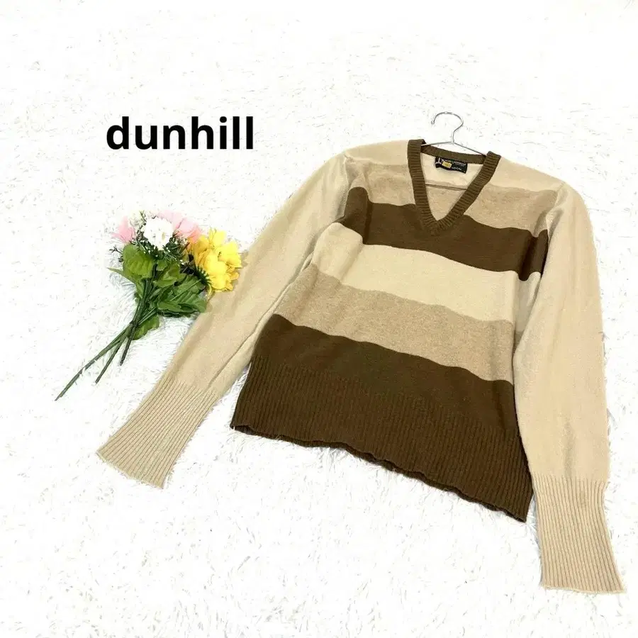 던힐 보더 니트 V넥 스코틀랜드제 순 캐시미어 스웨터