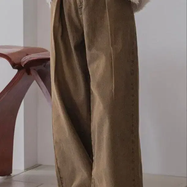 택 포함 새상품 LOWRYS FARM 턱 와이드 데님 팬츠 브라운 M
