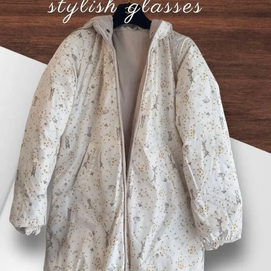 블랑슈리페 리버서블 다운 코트 토끼 곰 꽃무늬 다운 코트