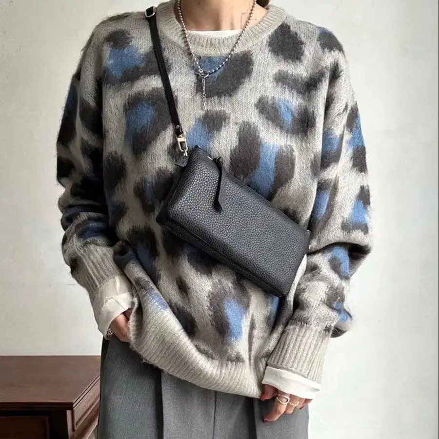 [ DouDou ] 레오파드 샤기 크루넥 니트 스웨터