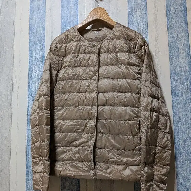 유니클로 노카라 라이트 다운 자켓 스냅 여성용 L