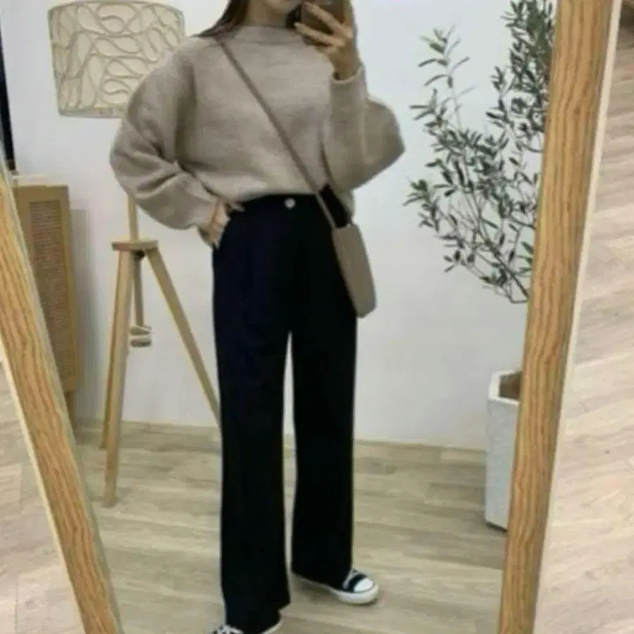 BLATE 미라인 고급 프론트 버튼 루즈 와이드 팬츠