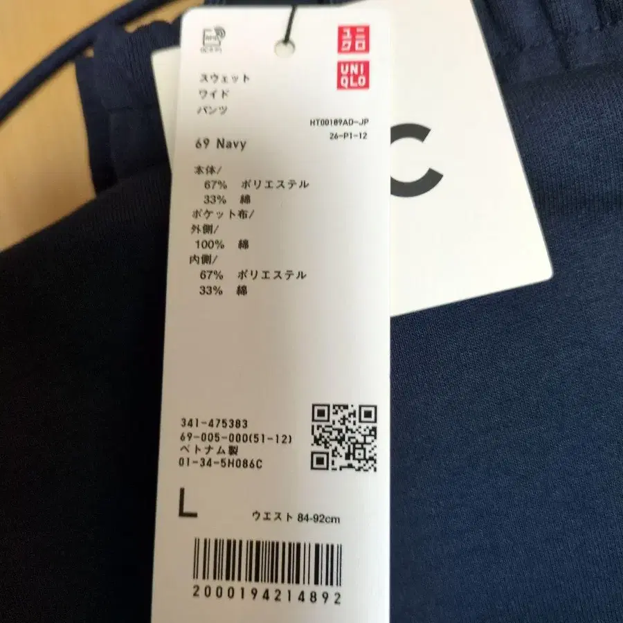 맨투맨 와이드 팬츠 유니클로c 네이비 L
