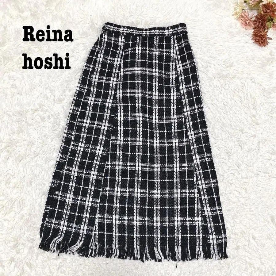 s.2094 [레이나호시] 롱 스커트 트위드 블랙 프린지 L