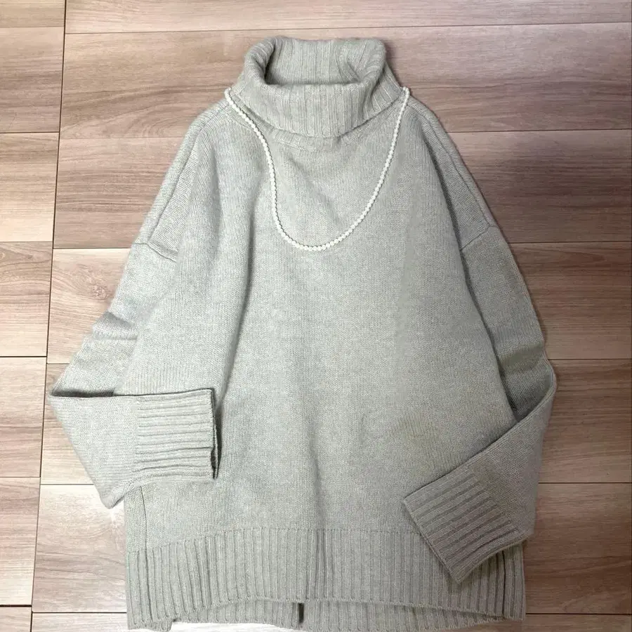 새상품급 아이씨비 울 100% 터틀넥 니트 베이지 S
