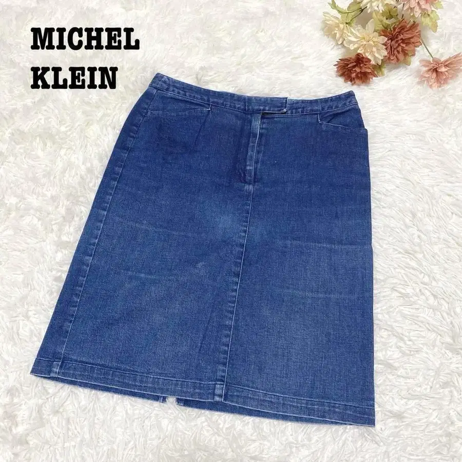 s.444 [미쉘클랑] 무릎 기장 데님 스커트 일본제 타이트 블루 L