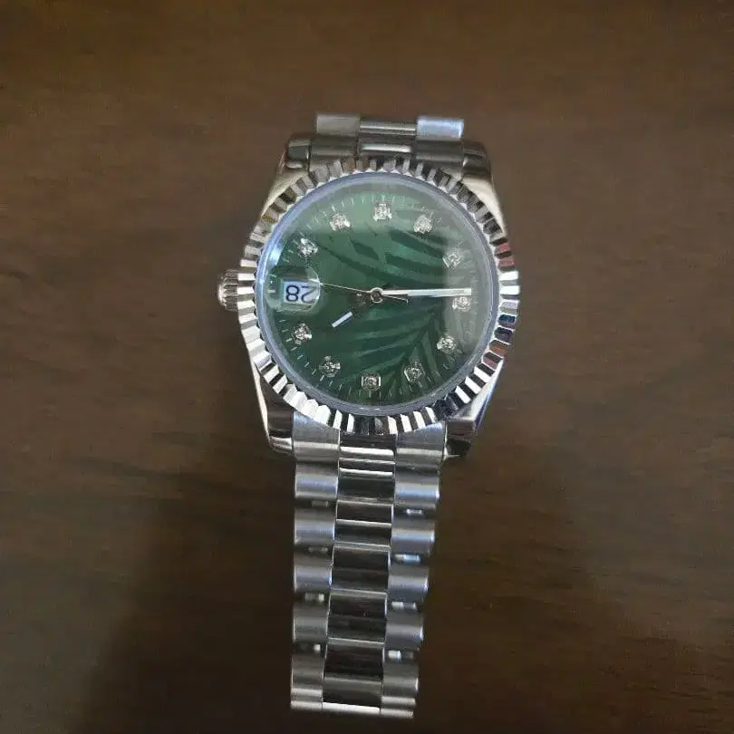 NH35 MOD 자동 시계 그린 컬러 다이얼 지르코니아 인덱스