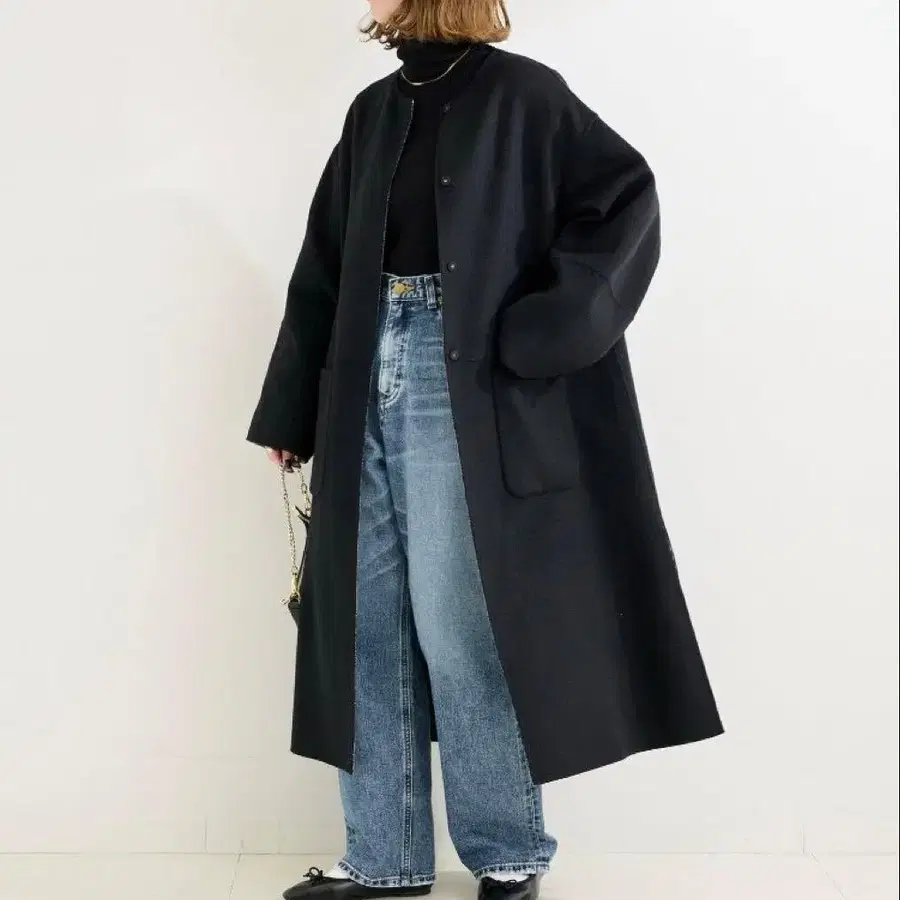 심플하고 세련된 디자인의 블랙 롱 코트.