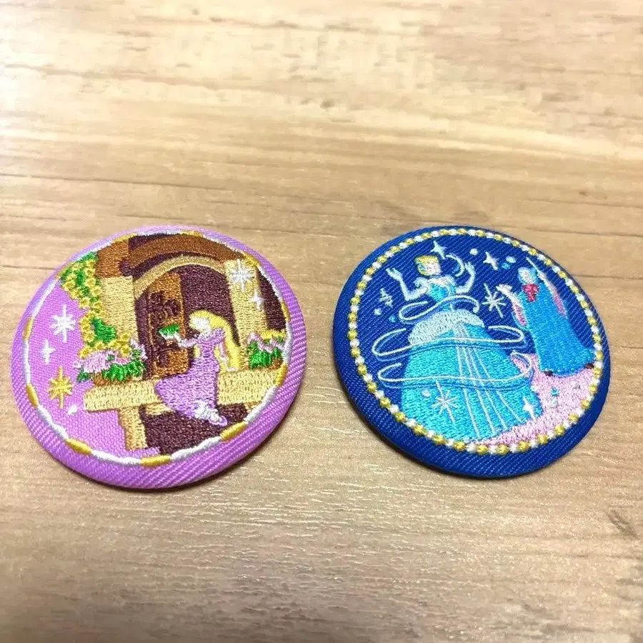 디즈니 자수 캔 배지 2개 세트 라푼젤 / 신데렐라