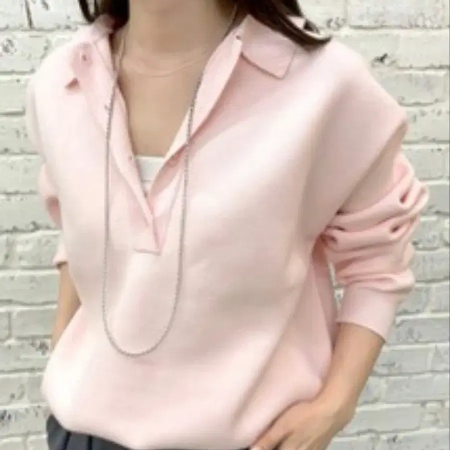 SHENERY 핑크 폴로 니트 스웨터 시너리 폴로 스웨터