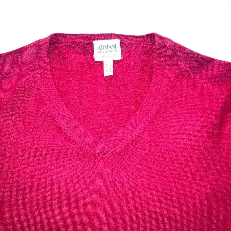 Armani 빨간색 V넥 긴팔 니트 스웨터