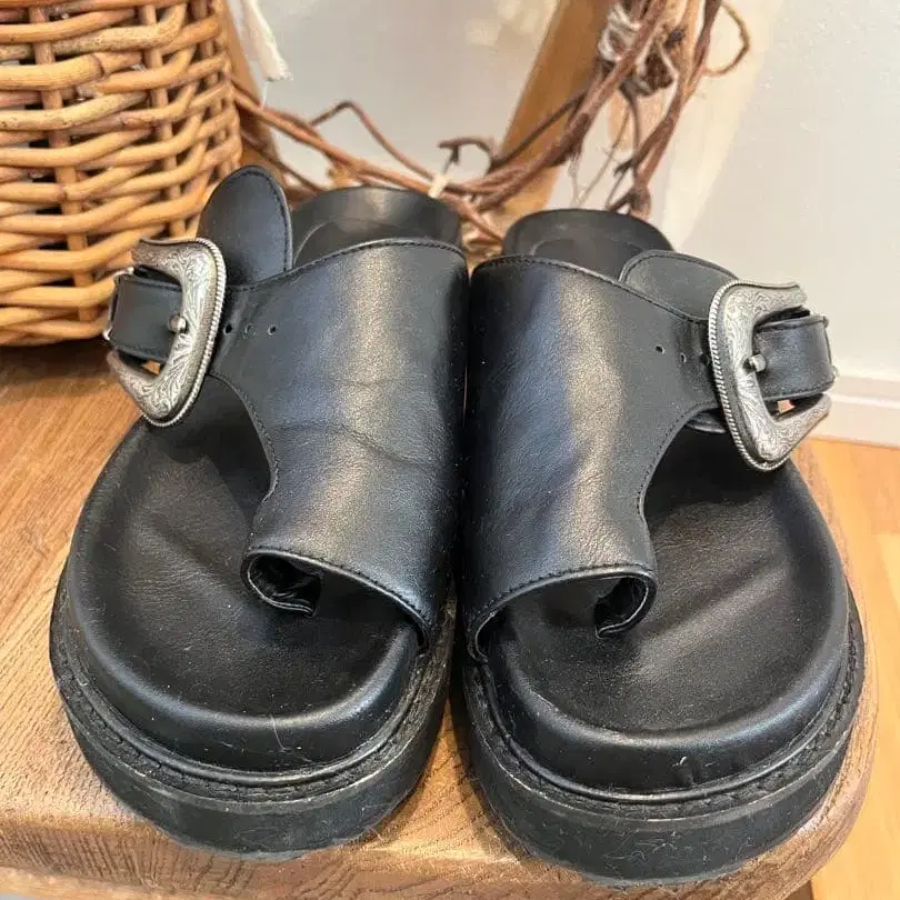 MONEY SY 블랙 가죽 샌들