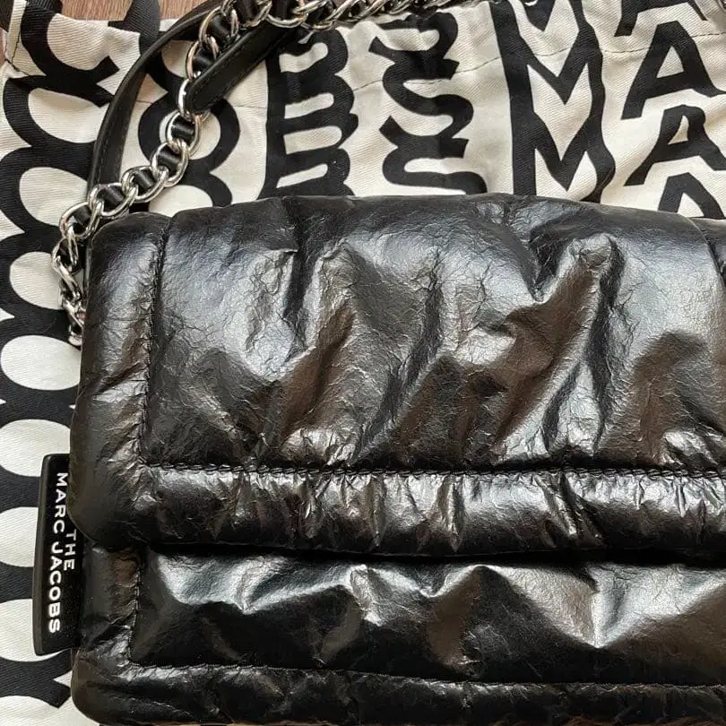 퀼팅 디자인의 블랙 숄더백, 체인 스트랩 포함. - 브랜드: MARC JACOBS - 색상: 블랙 - 소재: 나일론 - 디자인: 퀼팅 - 스트랩: 체인 포함 - 부속품: 토트백 방문해 주셔서 감사합니다.