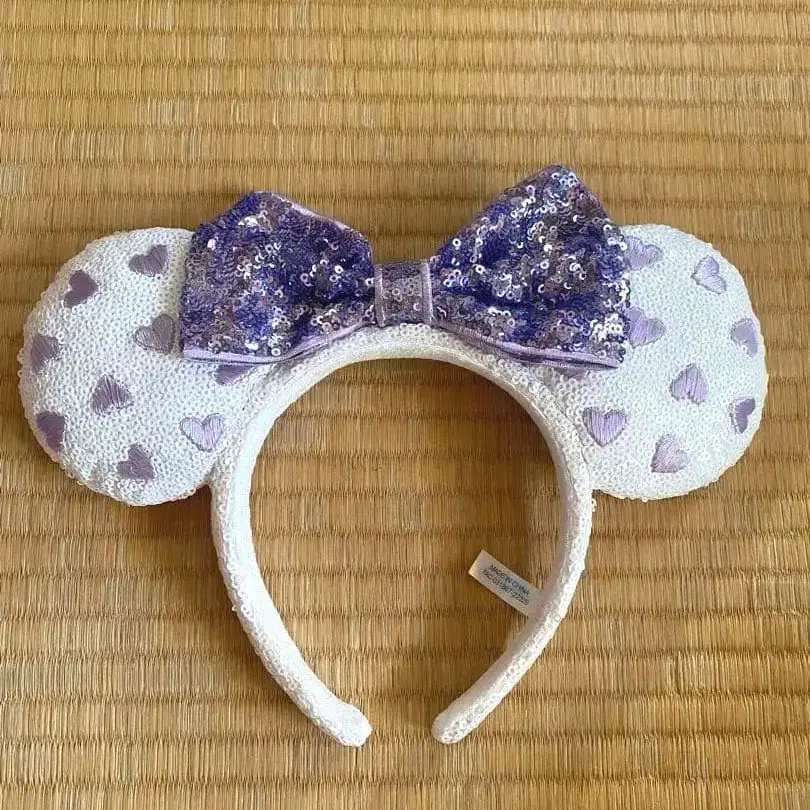 디즈니 머리띠 미니 스팽글 화이트 퍼플 하트