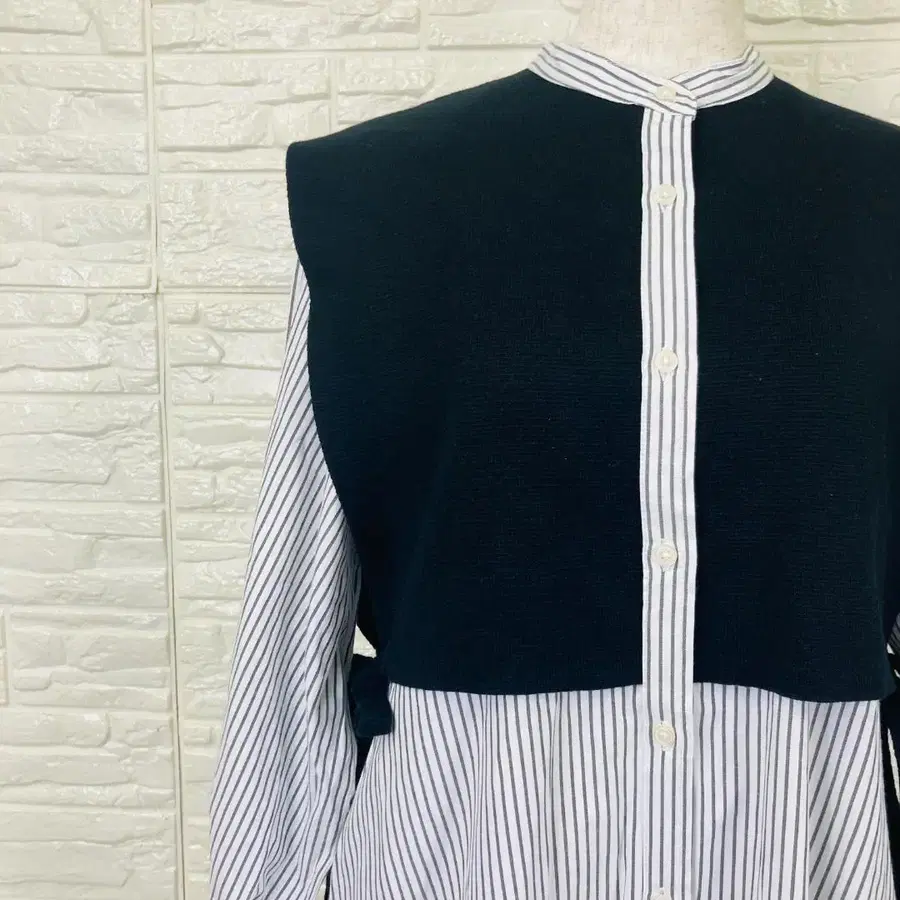 #아파트바이 #Apartby #원피스 #롱 원피스 #셔츠 원피스 #스트라이프 #니트 베스트 #레이어드 #밴드 카라 #긴팔 #S 사이즈 #여성 패션 #캐주얼 #깔끔한 캐주얼 #봄/가을 코디 #세트 아이템 #돌려입기 코디 #모드 캐주얼 #성인 여성 #심플 코디