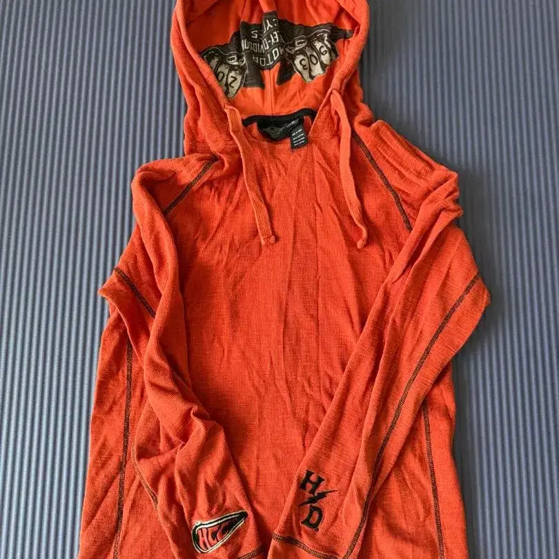 할리데이비슨 후드 부착 T셔츠 M 오렌지 구제 의류