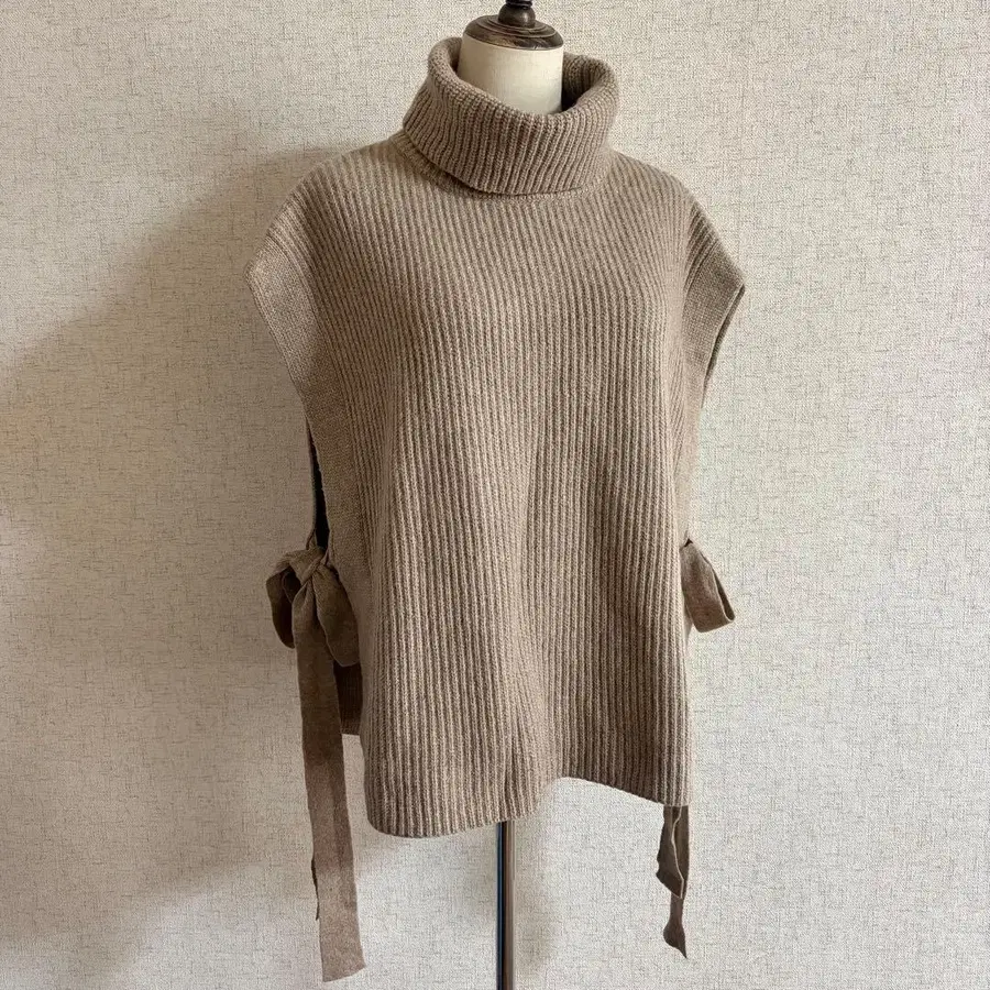 Attention/베이지 터틀넥 니트 베스트 사이드 리본 포함 F