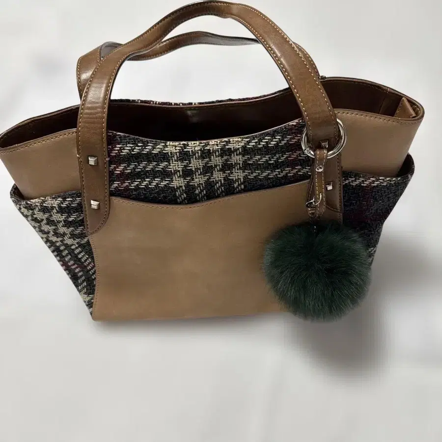 ELLE 베이지 트위드 체크 무늬 핸드백 대용량 칸막이 많음 새상품급
