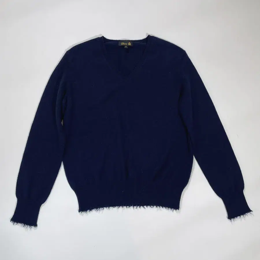 드로어 니트 스웨터 캐시미어 100% V넥 프린지 네이비 M