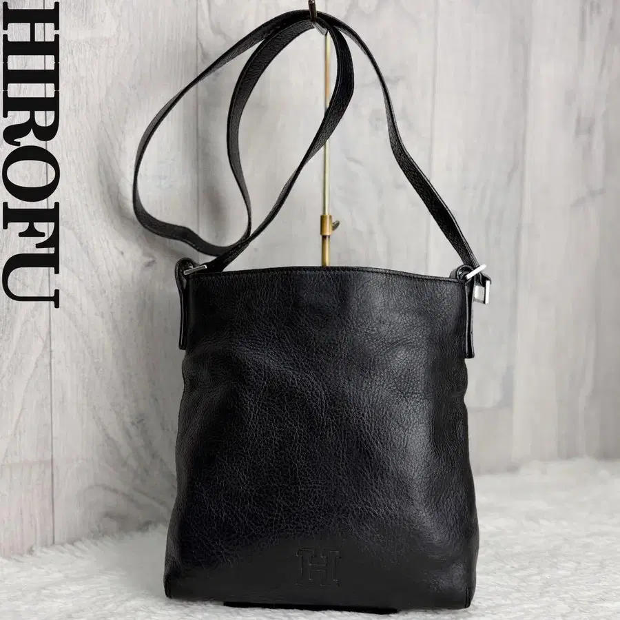 새상품급 HIROFU 히로후 로고 가죽 H 로고 숄더백 블랙