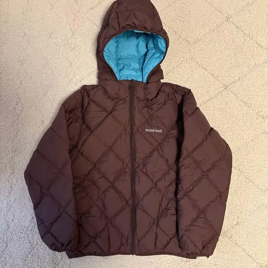 몽벨 퀼팅 다운 후드티 스카이블루/브라운