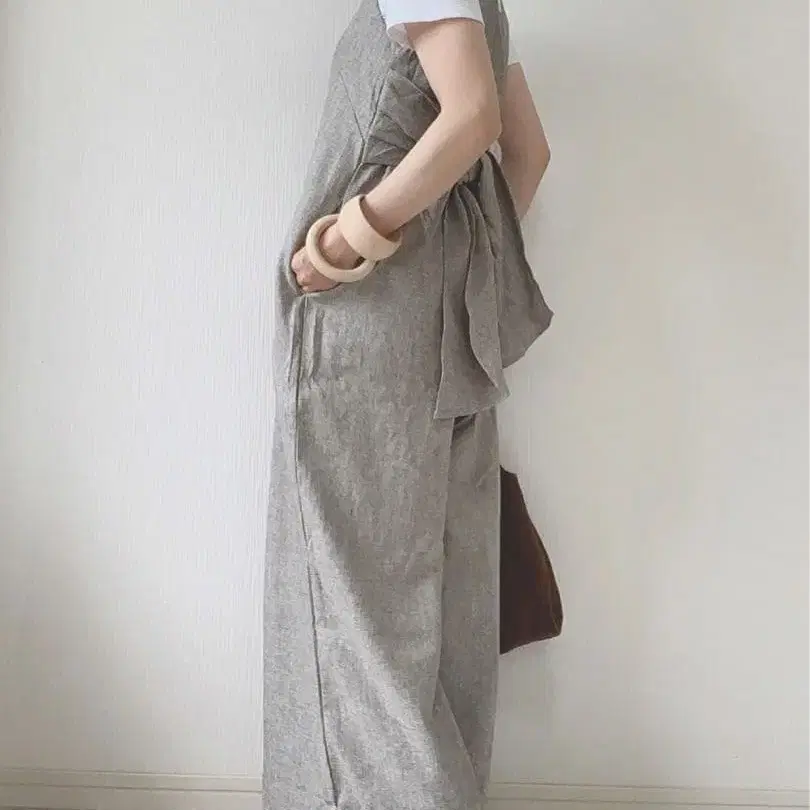 T012 유어즈 2way 리본 살로펫 M 베이지 와이드 팬츠 린넨