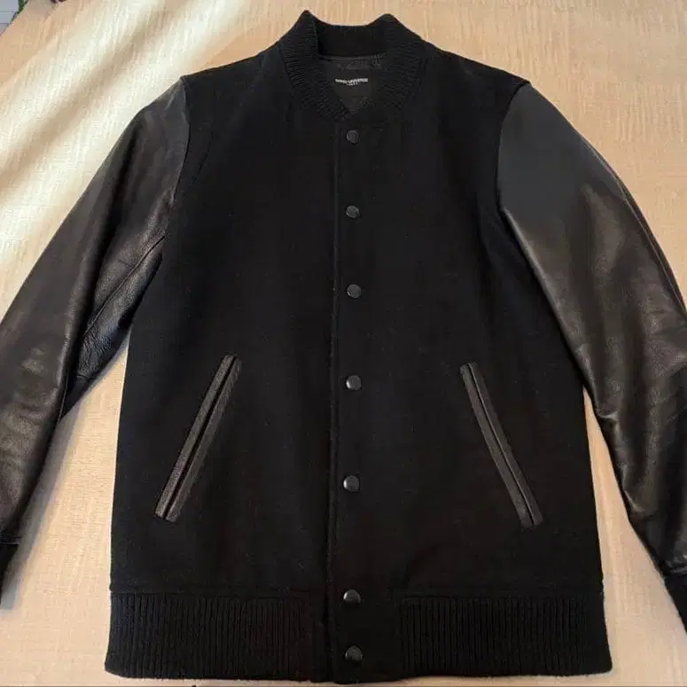 나노 유니버스 울 가죽 콤비 자켓 블랙