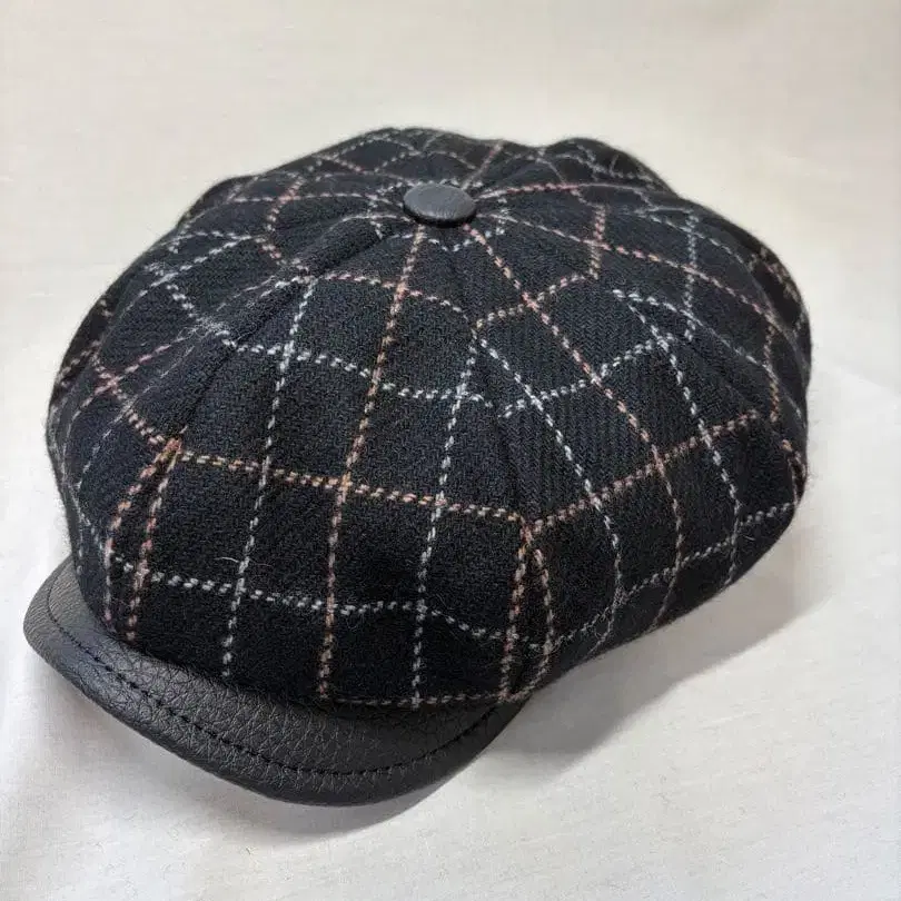 핸드메이드로 정성껏 제가 만들었습니다. 8개의 조각으로 이루어진 헌팅 캡입니다. 이번 헌팅 캡은 챙을 포함한 전체 길이 31cm, 너비 28cm이며, 챙을 살짝 구부려 쓰면 멋스럽게 착용할 수 있습니다. 실루엣과 원단의 촉감에 신경 써서 만들었습니다. 평소보다 약간 작습니다. 원단에 표정이 살아있어 매우 멋스러운 타탄 체크 블랙 체크 울 원단과, 챙은 블랙 인조 가죽의 큰 주름을 사용했습니다.