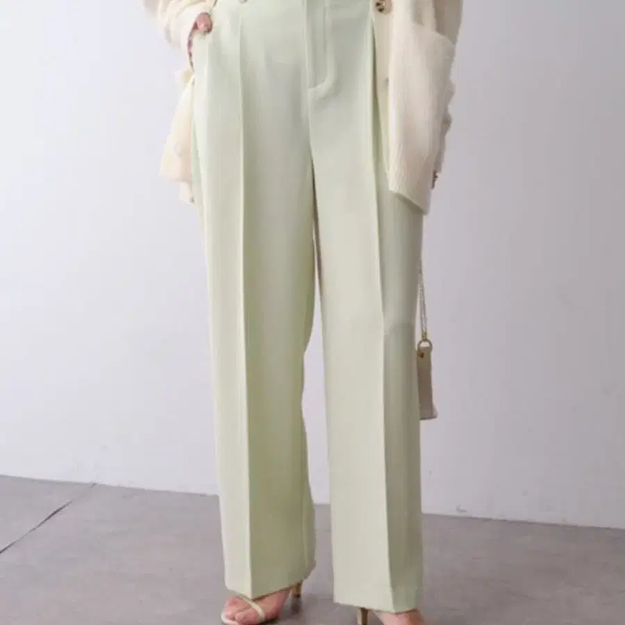 콜라주 개럴개런트 옅은 그린 하이웨스트 와이드 팬츠