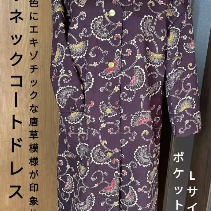 기모노 옷감으로 만든, 차분한 보라색에 이국적인 당초 무늬가 인상적인 V넥 코트 드레스입니다! 이것 하나만으로 코디가 완성될 정도의 존재감을 가진 한 벌로 완성되었습니다 (*^^*) 모와 나일론 소재로 만들어져 기모노 옷감치고는 다루기 쉬울 것 같습니다. 포켓이 있어 기능적입니다. 이너와 팬츠는 상품에 포함되지 않습니다. 기장 - 95 cm 가슴 너비 - 53 cm 어깨 너비 - 54 cm ※ 드롭 숄더 소매 길이 - 42 cm ※ 소매 부착 위치부터 소재 - 모, 나일론 구제 기모노를 풀어 홈 클리닝 후 꼼꼼하게 다림질하여 제작했습니다. 따라서 바늘 자국이나 접힌 부분, 경년 변화로 인한 얼룩 등이 있습니다. 염색한 것이므로 색 빠짐이 있습니다. 단독으로 세탁하여 확인해 주세요. 기모노, 유카타 원단이므로 세탁 시 취급에 주의해 주세요. 전문가가 아니므로 완벽을 추구하시는 분은 구매를 삼가해 주십시오. 구제 의류 느낌으로 즐겨 입으실 수 있는 분께 추천합니다! 어머니가 만드신 옷은 넉넉하고 착용감이 좋아서 평소에도 자주 활용하고 있습니다. 기모노, 유카타 리메이크라는 점에서 기성품과는 다른 색상 패턴과 제작 방식의 옷이 많아 보는 재미가 있습니다 (^^) 다른 상품도 판매 예정이니 꼭 둘러봐 주세요!