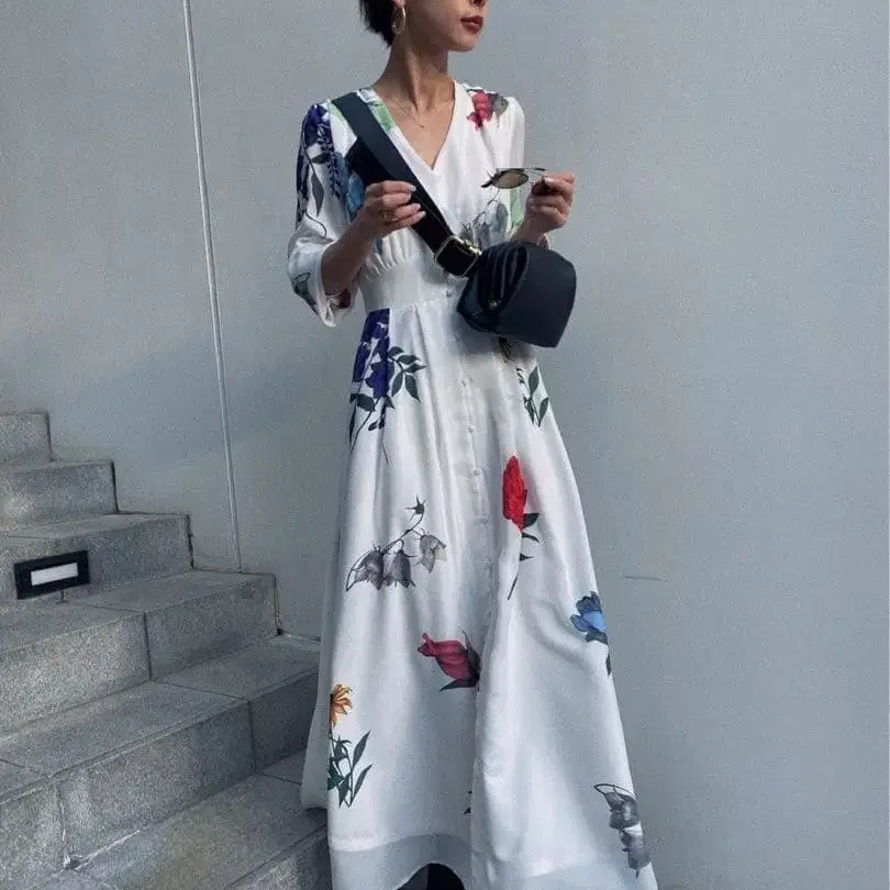 아메리빈티지 세탁 태그, 상품 택 포함 사이즈 S 앞을 열어 겉옷으로도 활용 가능합니다. 매장에서 구매 후 2회 착용, 세탁하여 보관했습니다. 앞에서 보았을 때 오른쪽 허리에 얼룩, 버튼 하나에 얼룩, 소매에 얼룩, 뒤쪽 허리에 얼룩이 보이므로 사진으로 확인하신 후 구매 부탁드립니다. 반품 및 컴플레인은 받지 않습니다. 상품 설명 이번에는 쉬폰 조젯에 AMANDA 패턴을 프린트하고, 풍성하게 밑단을 넓혀 여성스러운 드레스로 완성했습니다. 여성의 데콜테를 아름답게 연출하는 V넥, 앞 중심에 달린 호두 단추 등 디테일까지 신경 쓴 아이템입니다. 드레스는 물론, 앞을 열어 겉옷으로도 활용 가능합니다. 개인 보관품인 중고이므로 예민하신 분의 구매는 삼가해 주시기 바랍니다. 색상 - 화이트 패턴 - 꽃무늬 실루엣 - 플레어 색상 - 화이트 패턴 - 꽃무늬 계절 - 올 시즌 사이즈 - S