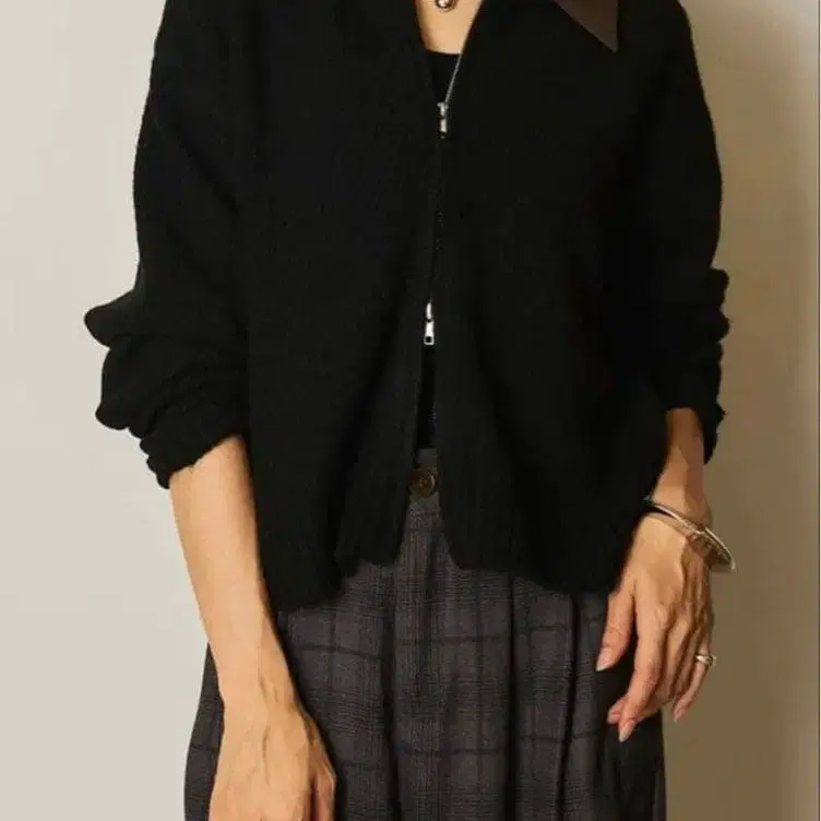 멜란지 스트레치 인조 가죽 카라 니트 블루종 블랙/esica 같은 형태