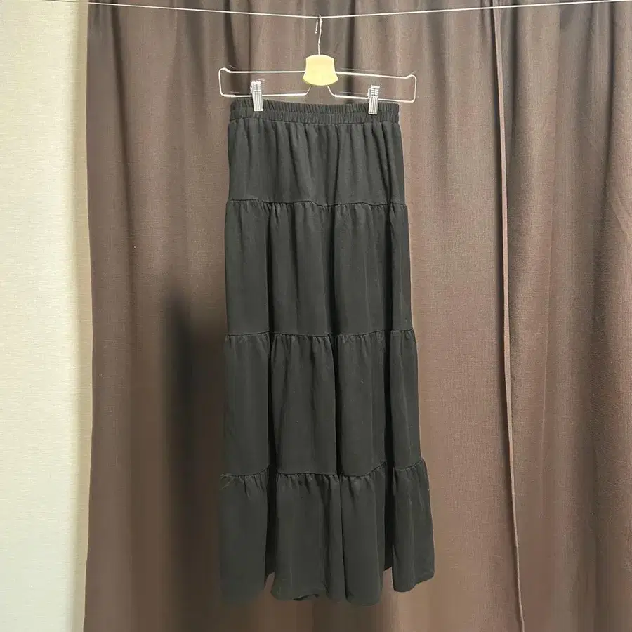 CHILLE 블랙 티어드 롱 스커트