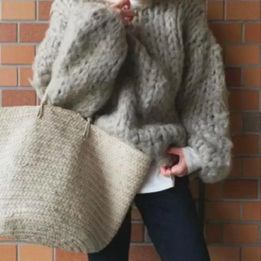 ETRE TOKYO 로우게이지 루즈 니트 풀오버 그레이