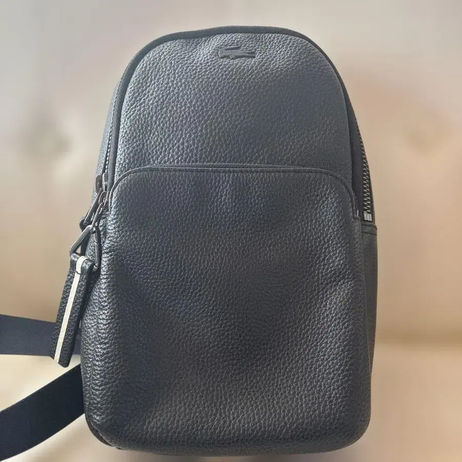 Lacoste 가죽 숄더백 네이비
