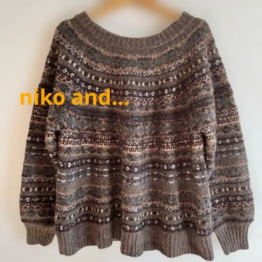 니코앤드 - 새상품급 노르딕 무늬 긴팔 니트 울 혼방 브라운 계열